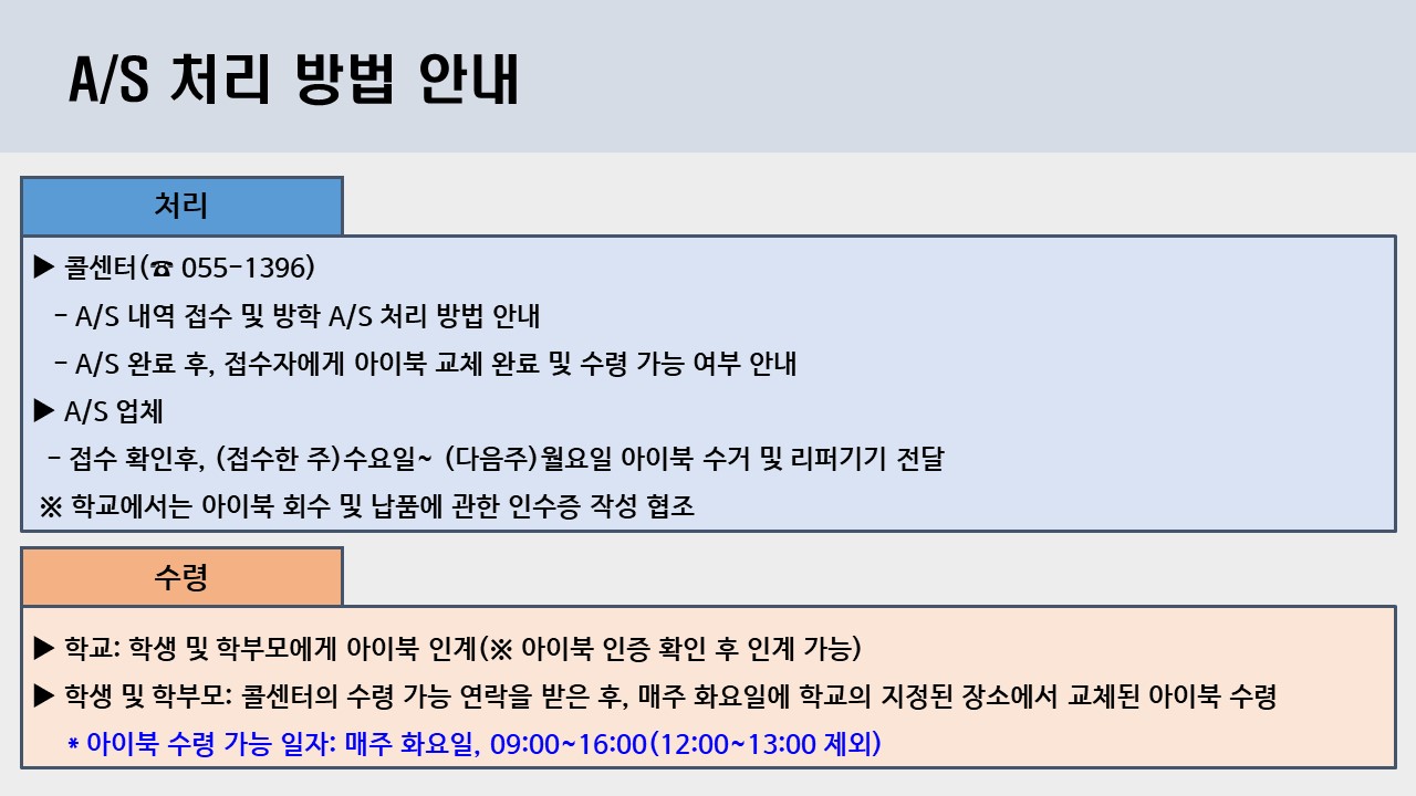 방학 중 아이북 AS 처리 방법 안내