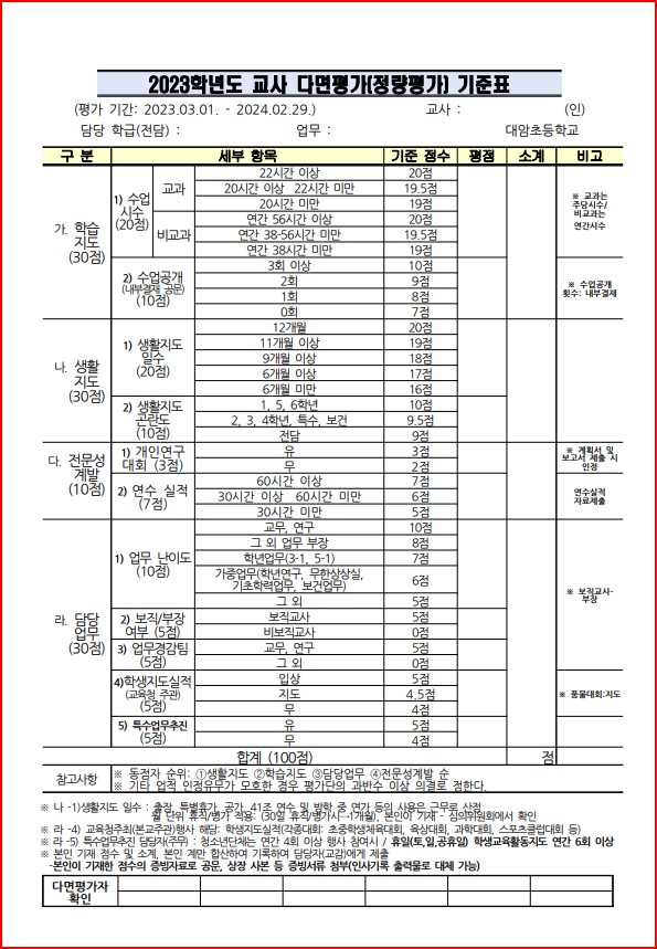 2023. 다면평가(정량평가) 기준(대암초)